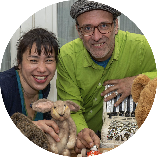 Susannah Yasuda (tekst en zang) en Wolfram Reisiger (accordeon en piano) maken samen muziek, muzikale kindertheater voorstellingen en geven muzikale bewegingslessen in het basisonderwijs van de Vrije School. Met veel plezier schreven en zongen ze liedjes op bepaalde thema’s voor Leesteksten.nl!